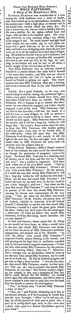 The earliest example comes from a source that would warm Herbert Asbury’s heart: an anecdote printed in the wake of Boston’s Broad Street Riot of 1837. Here is a reprint of the story, first printed that same year: