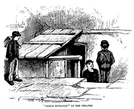 The boys who formed the Grand Duke’s Theater in late 1873 were a group of six to eight Sixth Ward newsies (newspaper boys) and bootblacks, ranging in age from 9-16. They came from poor or modest families, but none were known to be homeless. Though they hardly could have grown up ignorant of street crimes, they appear to have been (with a few exceptions) law-abiding. Several were quite literate, and were known to have attended school. Most of all, they were fans of popular theater, especially of productions of the Bowery theaters: variety and musical theater, i.e. what would later be known as vaudeville.