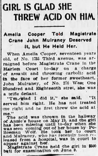 However, cold water (if not acid) can be thrown on this by pointing out that different articles gave the man’s name as John Mulvaney, Joseph Mulraney, and James Mulvaney; and that he was a stock clerk by profession; he was permanently blinded in one eye and his face was severely burned.
